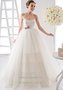 Свадебное платье с юбкой из легкого фатина. Корсет с соблазнительно открытым лифом обтянут тончайшим кружевным полотном с нежными цветочными узорами. Немного завышенная линия талии выделена широким атласным поясом с кокетливым бантиком контрастного цвета и очаровательной брошью. Юбка состоит из нескольких ярусов невесомой ткани.