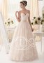 Кружевное свадебное платье с атласным поясом. Строгий корсет с открытым фигурным лифом эффектно задрапирован мягкой сетчатой тканью. Красивые вышитые композиции в цветочных мотивах расположены по всей длине пышной юбки. Модель выглядит настолько изысканно и утончённо, что позволит невесте почувствовать себя настоящей королевой бала.