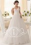 Свадебное платье с кружевными плечиками и пышной юбкой. По всей длине модель задекорирована тончайшим кружевом с нежными цветочными узорами. Корсет с фигурным лифом украшен драпировкой. По контуру лифа проходит невероятно красивая вышивка из бисера и бусин. Такая же вышивка исполняет роль пояса, эффектно подчеркивающего линию талии.