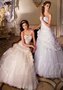 Потрясающее платье с открытой зоной декольте и заниженным корсетом. Небольшой вырез и объёмные цветы ручной работы зрительно увеличивают бюст. Изящный корсет украшен лёгкими складками драпировки. Пышная юбка выполнена из невесомой ткани и доходит до самого пола. Представленная модель эффектно подчёркивает достоинства фигуры невесты.