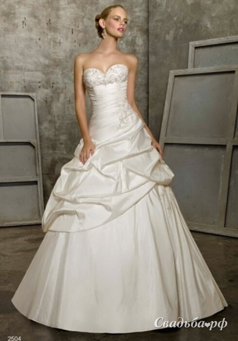 Свадебное платье из роскошной кремовой ткани с оригинально декорированным корсетом. Выразительный лиф этого наряда, обильно расшитый бисером, придает особый шарм и акцентирует внимание на безупречной форме груди. Корсет платья мягко переходит в необычную драпировку. Это платье никого не оставит равнодушным.