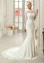 Силуэтное кружевное платье по фигуре с рукавами и шлейфом.
