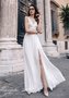 Свадебное платье прямого кроя с кружевным верхом и разрезом на юбке.