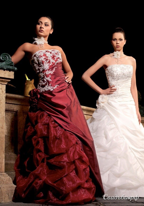 Пышное платье в бордовом цвете с серебряной вышивкой