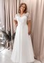 Свадебное платье силуэтного кроя с коротким рукавом и тонким нежным кружевом. Подробнее на nevesta-msk.ru