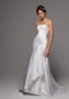 Свадебный туалет из шёлка. Лиф, отлично подчеркивающий грудь, приталеный корсет. Длинная юбка от бёдер с декоративной нашивкой драпирована многочисленными мелкими складками. Изысканная брошь будто образует все новые складки, придающие наряду необычность. Подойдет девушке среднего или небольшого роста.