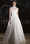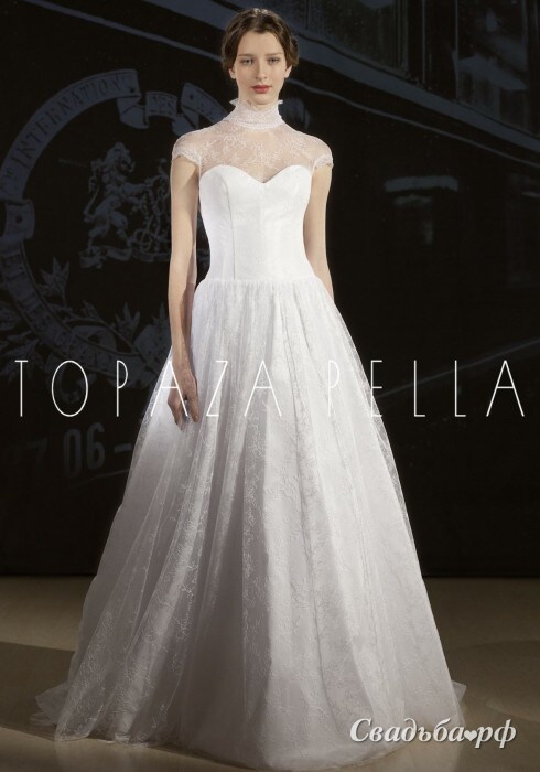 Элегантное свадебное платье с лифом, выполненным в форме сердца. Верхняя часть лифа закрыта полупрозрачным нежным кружевом. Открытые руки дают возможность подобрать различные аксессуары, например изящные перчатки. Длинная и пышная многослойная юбка с верхним слоем из кружева, создает ощущение легкой воздушности.