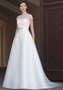 Великолепное свадебное платье А-силуэта из коллекции INSOUL сшито из благородного сатина-микадо. Верх платья поверх сатина покрыт кружевом, которое создает интересное болеро и аккуратными рукавчиками прикрывает плечи невесты. На талии красуется брошь-бант из страз и камней разной величины. Юбка средней пышности ниспадает до самого пола и заканчивается шлейфом.
