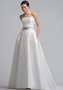 Классическое свадебное платье А-силуэта сшито из ткани сатин-микадо. Все наряды коллекции BONJOUR отличаются отсутствием лишних деталей и это платье не исключение - прямая линия декольте и плотный корсет без украшений, юбка средней пышности и изящный шлейф. Но неширокий поясок нежно-лилового цвета с брошью придает нужный контраст образу.