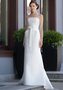 Свадебное платье из коллекции INSOUL отличается прямым силуэтом. Плечи полностью открыты, линия декольте прямая, на талии тонкий атласный поясок с бантиком по центру. Юбка плавно ниспадает к полу и заканчивается шлейфом. Два объемных кармана - изюминка наряда, придающая необычности образу невесты и практичности при носке.