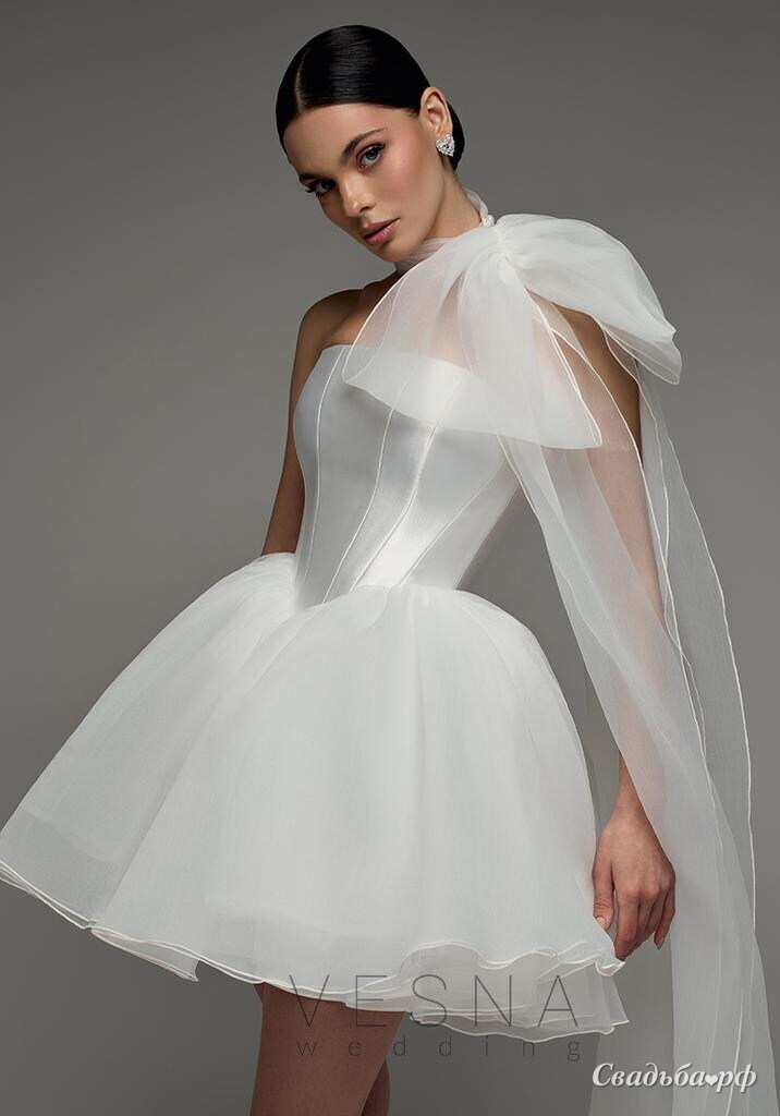 Свадебное платье Элиф Мини Вайт + Шарф-V70030