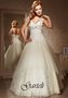 Беспроигрышное сочетание нежного кружева и лёгкого фатина – вот изюминка представленного свадебного платья от лучших отечественных мастеров. Заниженный корсет с изящными бретелями и V-образным вырезом на груди дополнен бантиком. Пышная юбочка с несколькими ярусами драпировки окантована ажурным кружевом. Стильная модель для роковых красавиц.