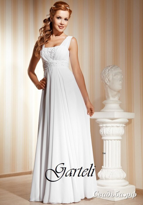 Нежное платье из тонкого шифона поможет создать лёгкий образ настоящей богини! Широкие бретели обрамляют открытую зону декольте. Грудь и широкий поясок вручную расшиты бусинами и сверкающими камнями. Длинная юбочка с завышенной талией струится до самого пола и зрительно вытягивает силуэт. Завораживайте с первого взгляда!