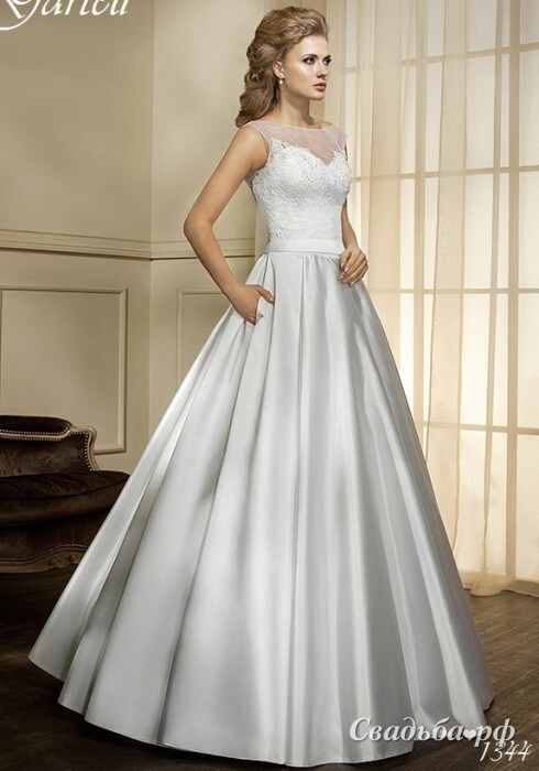 Для создания королевского свадебного образа это платье подходит как нельзя лучше. Пышная юбка из благородного атласа гармонично сочетается с расшитым вручную корсетом. Полупрозрачная вставка на груди придаёт модели очарование и невинность. Изящный пояс подчёркивает талию. Представленный наряд от Garteli не перегружен декоративными элементами.