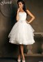 Кокетливая модель от ведущих отечественных дизайнеров позволит Вам продемонстрировать свои прекрасные ножки. Пышная юбочка с многоярусными воланами из ткани разной текстуры смотрится легко и игриво. На поясе разместился объёмный цветок. Драпированный корсет с открытой зоной декольте эффектно подчёркивает все достоинства фигуры.