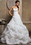 Хотите, чтобы Вас запомнили навсегда в такой торжественный день? Тогда представленное свадебное платье создано специально для этого случая. Драпированный корсет со сверкающей вышивкой под грудью зрительно увеличивает бюст. Пышная юбочка с объёмными сборками смотрится оригинально и воздушно. Стильный наряд из новой коллекции 2014 года.