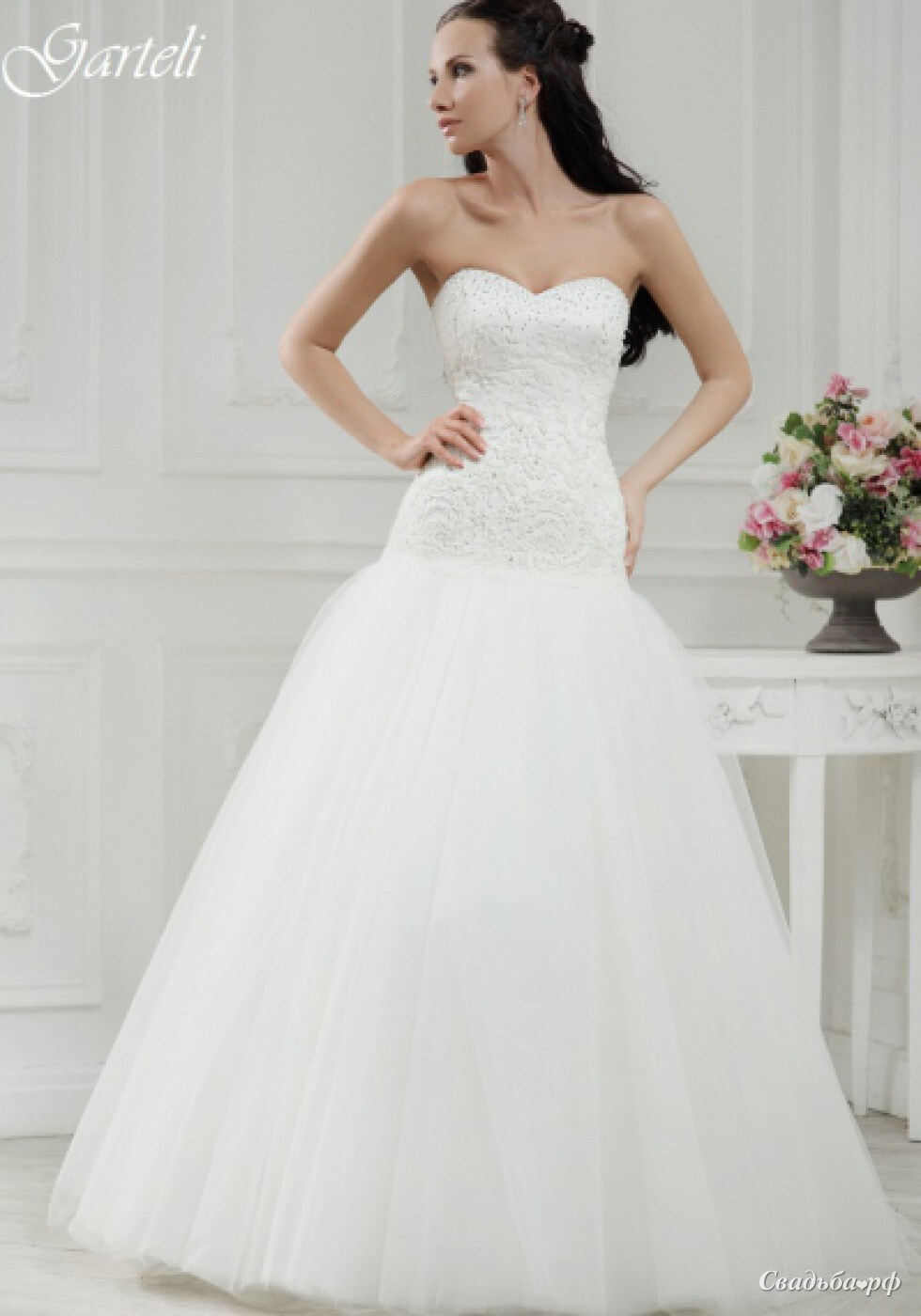 Шикарная модель свадебного платья для невест с утончённым вкусом. Роскошная пышная юбка выглядит по-королевски изысканно. Строгий удлинённый корсет с открытым фигурным лифом плотно обтягивает фигуру, эффектно подчёркивая все её соблазнительные женственные изгибы. Великолепная вышивка из бисера, стразов и бусин делает модель просто идеальной.