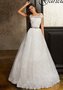 Очаровательное свадебное платье с миниатюрными рукавчиками и небольшим вырезом на груди. Корсет идеально садится по фигуре и выгодно подчёркивает изгибы фигуры. Талия подчёркнута розовым поясом со сверкающей вышивкой. Длинная юбка с верхним слоем из полупрозрачного кружева расширяется к полу. Ажурная окантовка подола придаёт образу особый шик.