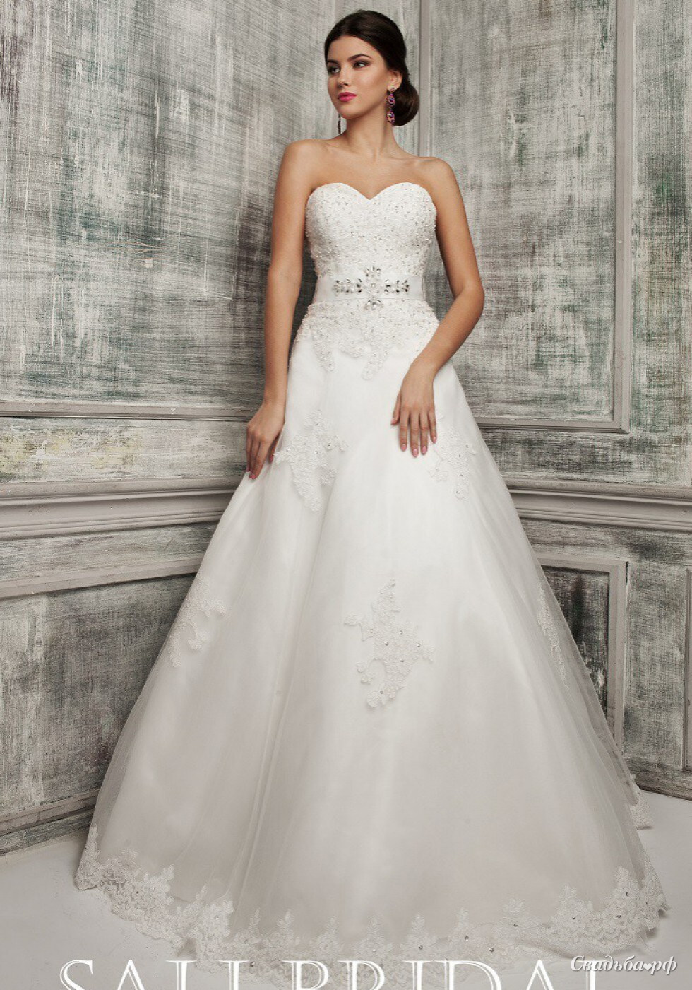 Свадебное платье А-силуэта с роскошным декором и кружевом