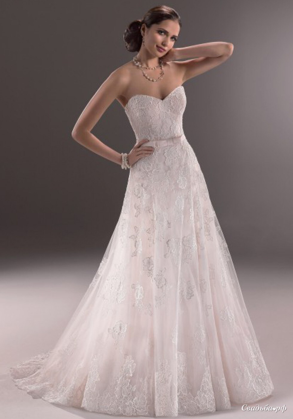 Классическое платье А-силуэта декорировано шикарным кружевом.