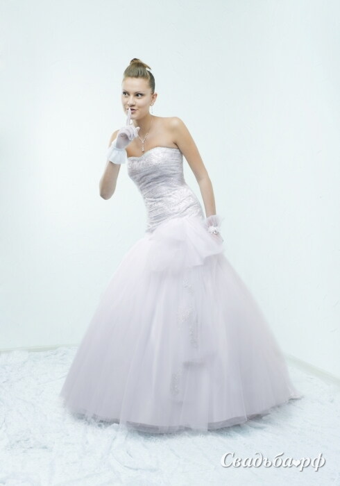 Восхитительное платье от известного дизайнера Веры Калининой поможет создать нежный образ современной невесты. Заниженный корсет с открытой зоной декольте выгодно подчёркивает все соблазнительные изгибы фигуры. Пышная юбка из французской кружевной сетки декорирована крупным бантом на боку. В этом наряде вы будете неотразимы.