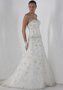Роскошное свадебное платье из нежного кружева отличается высочайшим качеством и безупречными формами. Этот наряд от итальянских дизайнеров украшен вышивкой ручной работы. Элегантный корсет с открытой зоной декольте эффектно подчёркивает все достоинства фигуры. Длинная юбка расширяется к полу и переходит в шлейф.