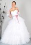 Восхитительное свадебное платье из фатина и благородной органзы никого не оставит равнодушным. Заниженный корсет с соблазнительной зоной декольте привлекает внимание к бюсту. Талия подчёркнута контрастным пояском с кокетливым бантом. Пышная юбка с многоярусными воланами придаёт образу невесомость и свежесть.