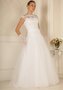 Закрытое свадебное платье из легкого фатина и роскошного кружева. Этот наряд с первого взгляда покорит свою будущую обладательницу. Форма корсета очень тонко подчеркивает талию, а легкая и воздушная юбка придает платью необычайную нежность. Особый изыск платью добавляет кружево, которое используется в отделке лифа. Оно плавно переходит на спину, немного ее обнажая, что делает образ невесты более романтичным.