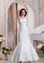 Восхитительное свадебное платье силуэта Русалочка выполнено известным дизайнеров Верой Калининой. Этот облегающий наряд из нежного гипюра и благородного атласа поражает своей элегантностью и лаконичностью форм. Открытая зона декольте привлекает внимание к бюсту. От уровня колен юбка расширяется. Стильный наряд для настоящей леди.