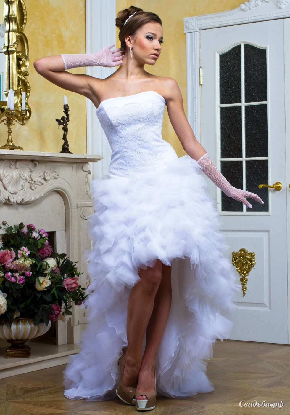 | Длина: | короткое платье со шлейфом |