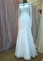 Кружевное платье силуэта Русалка с длинными кружевными рукавами и поясом из атласа на талии с небольшим шлейфом.