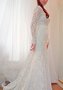 Стильное платье силуэта Русалка ,из кружева с длинными рукавами ,закрытое спереди .