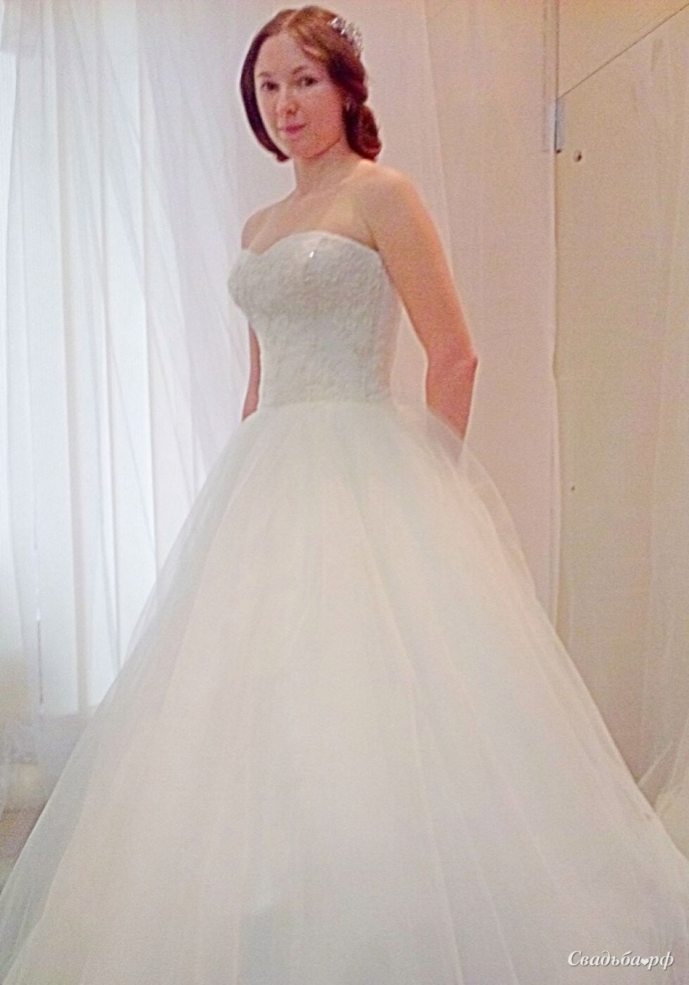 Пышное платье с кружевным лифом и кружевным краем по низу юбки.