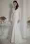 Стильное кружевное платье с длинными рукавами и небольшим шлейфом.