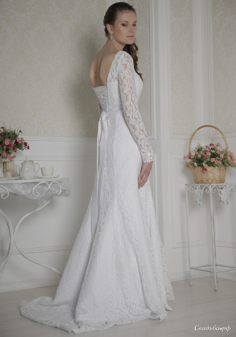 Платье силуэта Русалка с длинными рукавами и небольшим шлейфом.