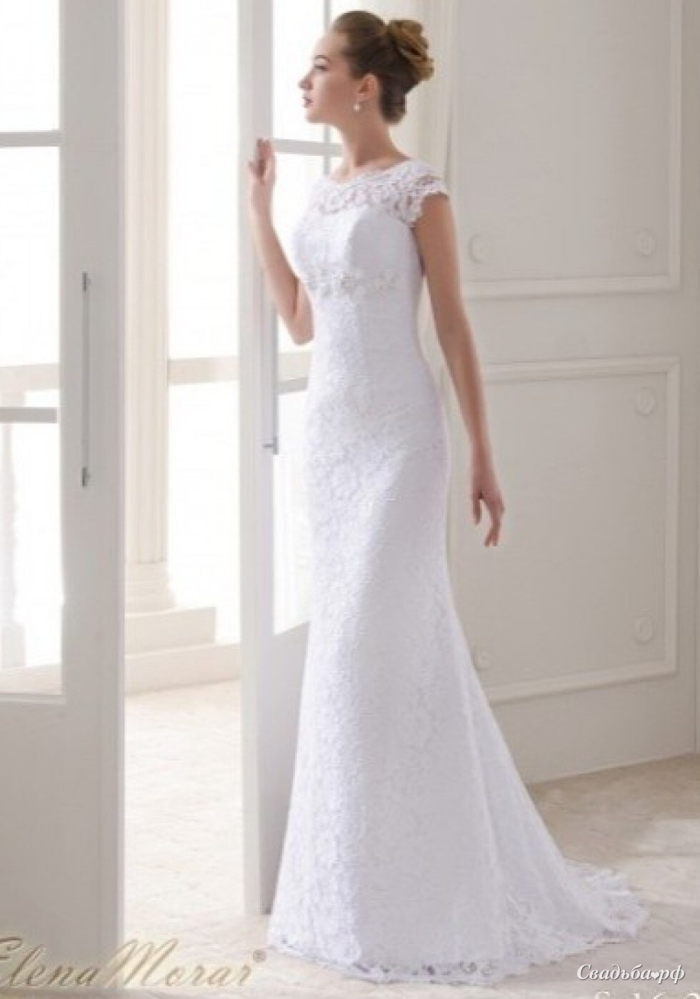 Нежное свадебное платье силуэта Русалка выполнено полностью из кордового кружева, плавно переходящего в шлейф и с небольшими плечиками (кимано) и с декоративным поясом, расшитым вручную бисером и стеклярусом.