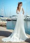 Струящееся платье из шифона с небольшим шлейфом, кружевным лифом и рукавами. Закрытый лиф спереди и открытая спинка сзади.