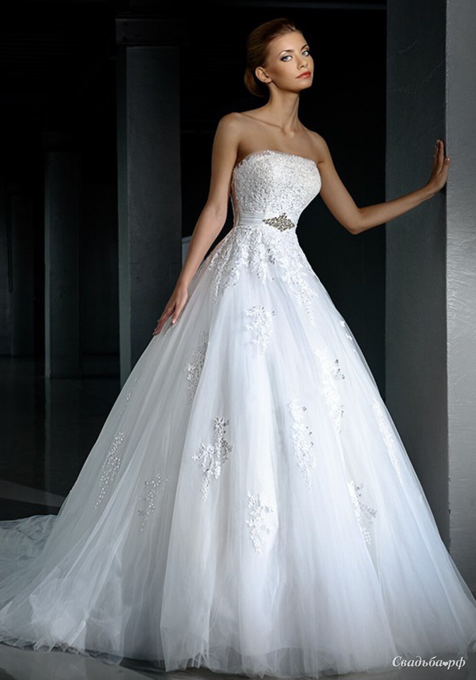 Романтичное свадебное платье А-силуэта от известного бренда Love Bridal поможет создать безукоризненный образ невесты. Кружевной корсет с открытой зоной декольте идеально садится по фигуре. Талия подчёркнута широким поясом с вышивкой. Пышная юбка с кружевными вставками переходит в шлейф. Нежно и со вкусом.