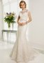 Кружевное свадебное платье из новой коллекции 2014 года выполнено в стиле Русалка. Полупрозрачная вставка на груди и ажурные плечики придают модели очарование и романтичность. Талия украшена сверкающей вышивкой. От середины бедра облегающая юбочка начинает расширяться и постепенно переходит в шлейф. Выбор настоящей леди.