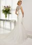 Представленная модель из новой коллекции 2014 года поражает богатством тканей: гипюр, вуаль и шан-жановая шелковая тафта гармонично сочетаются друг с другом. Облегающее свадебное платье с ажурной спинкой и закрытыми плечиками подчёркивает все женственные изгибы фигуры. Юбка постепенно расширяется и переходит в роскошный шлейф.