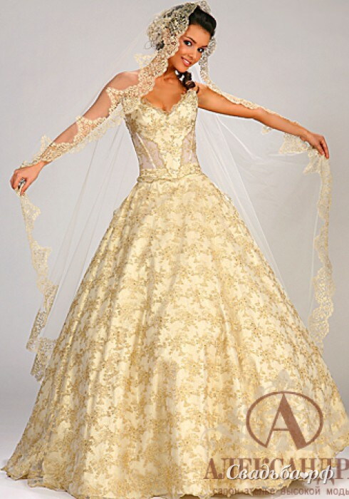 Великолепное пышное свадебное платье «Кристина» радует взор блистательной отделкой. Будто сама Весна колдовала над этой моделью, вышивая тонким солнечным лучиком чудесные цветы, усыпанные сверкающими росинками стразов Swarovski. Оригинальная драпировка, плавно перетекающая в шлейф, делает платье по-королевски роскошным. Полупрозрачные вставки на корсете визуально стройнят. Столь шикарное платье нуждается в соответствующих аксессуарах – прекрасным дополнением может стать испанская фата-мантилья, украшенная золотистым гипюром. Дайте понять жениху: его суженая – бесценное сокровище!