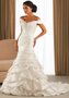 Очаровательное платье из шёлковой тафты поражает своими безупречными формами и оригинальным дизайном. Открытая зона декольте и кокетливо приспущенные плечики дополнены сверкающей вышивкой. Заниженный корсет с изящной драпировкой гармонично сочетается с пышной юбочкой и объёмными сборками. Шлейф придаёт модели особый шик.