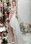 Неповторимое, незабываемое, необычное – это о данном платье! Корсет на тонких бретелях с бантом-поясом и асимметричная длинная юбка делают его непохожим на все другие свадебные наряды. Легкая струящаяся юбка сзади превращается в длинный шлейф, а спереди опускается до уровня колен, оставляя ноги открытыми.