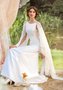 Грациозное и очень стильное силуэтное платье из мягкой тафты приятно удивит девушку легкостью и комфортностью. Классический силуэт платья с эффектом годе с успехом демонстрирует хрупкость и статность его обладательницы, тонкий драпированный поясок акцентирует внимание на талии. А оригинальные шифоновые рукава подобно крыльям лебедя мягко развеваются на ветру при ходьбе. Нежную матовость и скромность модели оттеняет декор на плечах в виде лепестков, усыпанных кристаллами и камнями.