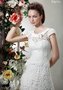 Стильное кружевное свадебное платье, декорированное розами. Округлый вырез модели окантован полосой из гладкой ткани и украшен кокетливым бантиком. Спина соблазнительно открыта. Ряд крохотных пуговичек расположен вдоль спины. Юбка – длинная, расширенная книзу, с небольшим элегантным шлейфом. Уточните информацию по телефону 8(495)930-9970.