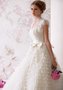 Роскошное свадебное платье с открытой зоной декольте и кружевным корсетом придётся по душе даже самым притязательным модницам. Широкий пояс с крупным бантом эффектно подчёркивает талию. Пышная юбка декорирована множеством ярусов нежных воланов. Дополнительно можно приобрести очаровательную накидку - болеро за 5560 рублей.