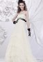 Кремовое свадебное платье классического А-силуэта. Лиф на тонких бретелях придает образу нежность и женственность, линию груди удачно подчеркивает атласная сиреневая лента, декорированная бусинами и стразами. Юбка выполнена из легкого, воздушного материала, нижняя часть ее украшена изысканным кружевом, ленту возможно заменить. Уточните наличие модели по телефону 8(495)930-9970.