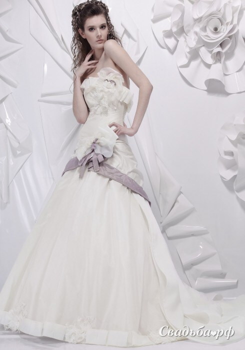 Оригинальное свадебное платье, умеренной пышности с небольшим шлейфом, платье украшено цветами сложной конструкции. В наличии 46(40) размера, уточните информацию по телефону 8(495)930-9970.