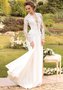 Роскошное свадебное платье в испанском стиле впечатлят своей строгостью и статностью. Платье сложное конструктивно и впечатлит невест, желающих выглядеть дорого и достойно. Кружевной лиф с длинными узкими рукавами отделан кружевной каймой. Центральная вставка лифа из сетки добавляет откровенности в образ. Длинная струящаяся шифоновая юбка является продолжением платья. Платье для девушки, не желающей обилия кружева в модели.