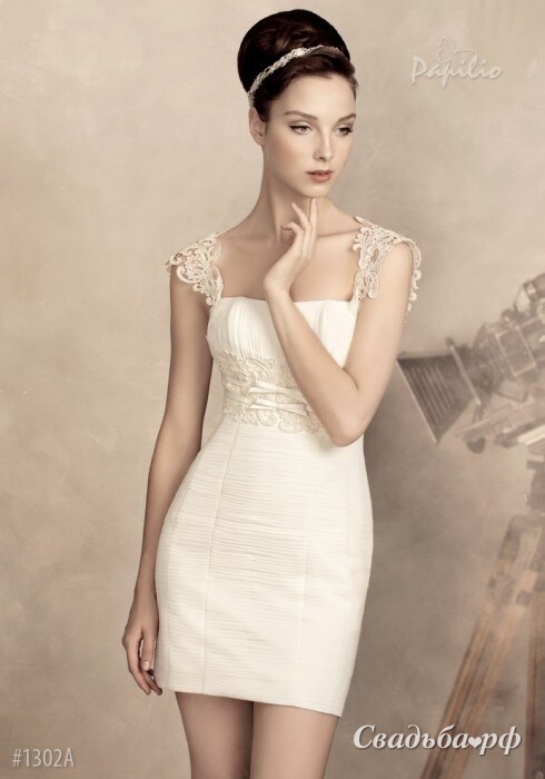 Первое впечатление, когда видишь это платье – восторг и восхищение. Необычный свадебный наряд!!! Платье-трансформер. Маленькое коктейльное платье из шифона с фактурной кружевной каймой по лифу. Нежная юбка-бедровка из тонкого тюля с драпированным широким поясом делает его поистине роскошным.